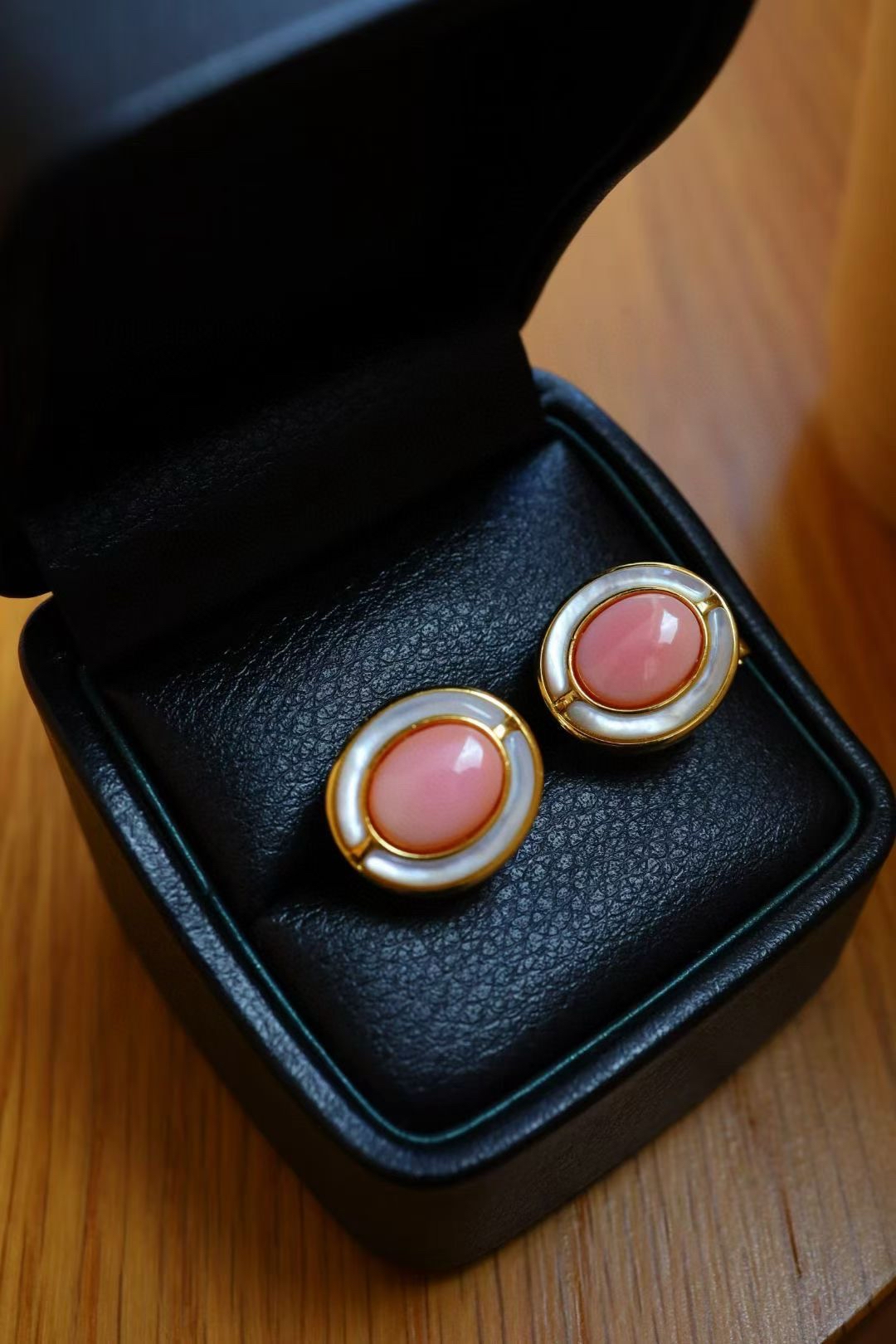 ✨s925天然女王貝配白貝母耳環✨純天然粉色✨